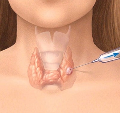 미세침 흡인 세포검사 : 가느다란 바늘을 사용하여 결절에서 세포를 채취하고, 현미경으로 암세포의 존재 여부를 확인합니다.